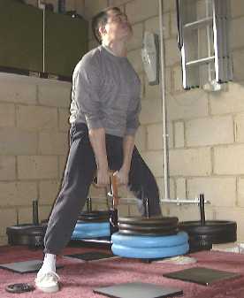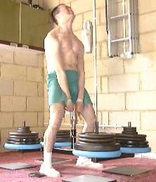 It started by accident. I'd invented the Power Rack which you see elsewhere in these webpages. I decided to test the rack with heavy weights by doing partials. With a straight bar in the Power Rack I worked up to a 296 kg Sumo with the bar starting at 455 mm high. At that point I ran out of bar space for weights.